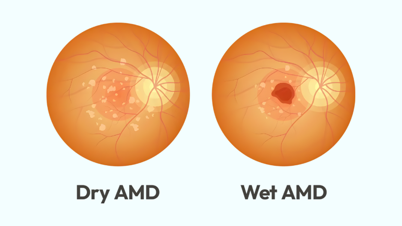 Hình ảnh minh họa mắt mắc bệnh thoái hóa hoàng điểm thể khô và thể ướt
